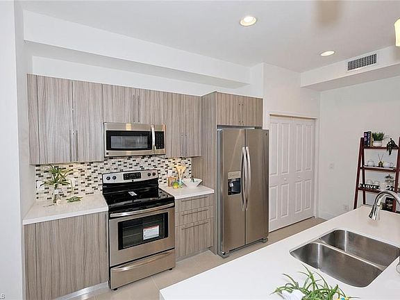 New Luxury Condos, Just 4 miles from Sanibel and Fort Myers Beach. These modern move in ready condos are perfect for your second home or full time living in this gated community. This 2 bedroom/2 bath Aspen Floor Plan offers Quarts Countertop in the Island Kitchen, European-style cabinetry, all soft close, Stainless Appliances package plus Full-size Washer/Dryer), large porcelain tile, 10 ft ceilings, 8 ft doorways, Hurricane Impact Glass, screened lanai, & lighted covered parking, elevators and inviting lobby areas. Amenities include Community Pool and Hot Tub with large sundeck and gas BBQ grills directly across from the building. This is a pet-friendly building with generous weight limits. Video is from the decorated Magnolia model and is indicative of the finishes in all units. LOW HOA to include cable, insurance, water and more. Furnished packages are available upon request to make this an easy move in for your second home this winter if needed. CONVENTIONAL FINANCING AVAILABLE - THESE ARE FINISHED NEW CONDOS READY TO MOVE INTO. FLY AND BUY PROGRAMS AVAILABLE