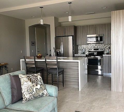 This beautiful newer condo is located just four miles from Sanibel and Ft. Myers beach. The 3 bedroom / 2 bath end unit - with large windows in every room - provides abundant natural light. The open concept living and dining area includes an island kitchen with stainless appliances, soft close cabinets, quartz counter tops and a large pantry cupboard. The unit has 10 foot ceilings and 8 foot doors throughout and is protected with hurricane resistant high impact glass. The master bedroom ensuite has a large walk-in shower, double sinks and a walk-in closet. Enjoy colorful sunsets from the southwest facing screened lanai. A separate laundry room includes a storage area and full size washer and dryer. This 3rd floor unit is accessed from a central elevator and also by a conveniently located stairway. Upgrades include complete professional painting, ceiling fans, window coverings and additional shelving. Majestic Palms is a gated community that provides a pleasant park-like environment with a pool, large sundeck, hot tub/spa and BBQ grills. Location, location... The fantastic location offers beaches, restaurants, grocery stores and shopping venues close by - many within walking or biking distance!