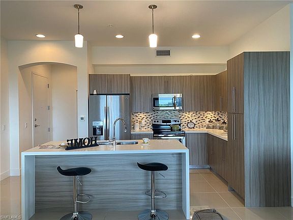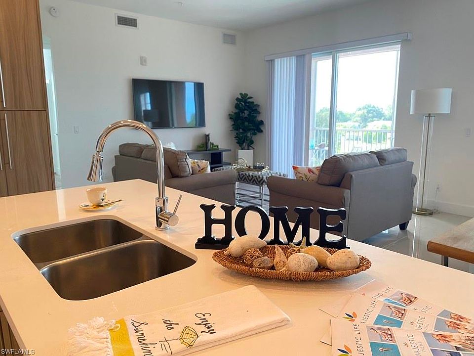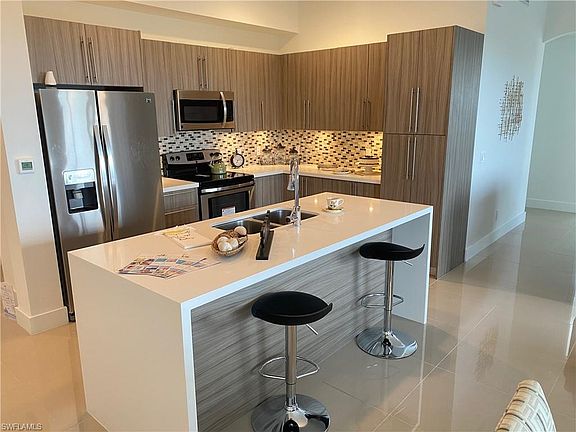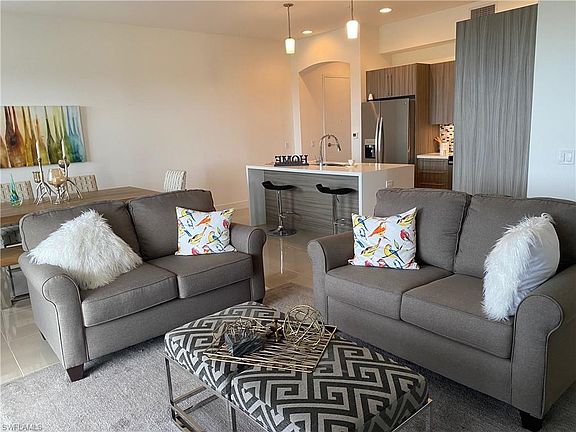 FULLY FURNISHED SALES MODEL! Right off McGregor Blvd-Fort Myers most famous & historic street-takes you from downtown all the way to the beaches in Fort Myers & Sanibel! Built in 2018, this unit is representing the BRIZA Floor Plan-3bed, 2bath +Den Condo over 1,394 sqFt. Walk in to pure luxury when entering the kitchen with quartz countertop, waterfall style island and European style cabinetry. The 10-ft ceilings and 8-ft doorways give the whole condo an even more spacious & luxurious touch! Gated entrance, hurricane impact windows & street lights over your covered parking are giving you all the privacy & security you need. Step out and enjoy Florida's Lifestyle with your friends/family on the spacious sun deck with a geometric swimming pool & heated spa or maybe dinner by the outdoor BBQ area? Having Shops, Restaurants, Target, Starbucks and much more right around the corner & the ONLY 4 mile drive/bike ride to the beach is making this Condo the perfect annual/seasonal rental or a 2nd home to escape the cold winters!