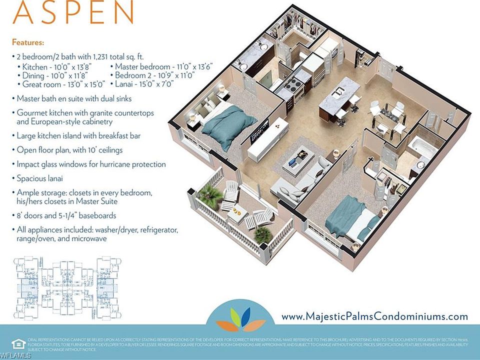 *BUILDERS SELL OUT* Only four of left (One on each floor). This New Construction unit is representing the ASPEN Floor Plan - 2bed, 2bath Condo over 1,231 sqFt.(105 sqFt. screened in lanai included). The split bedroom floor plan (where the master suite is isolated from the rest of the other bedrooms) is perfect for families with kids or having guests over! Walk in to pure luxury when entering the kitchen with quartz countertop, waterfall style island and European style cabinetry.The 10-ft ceilings and 8-ft doorways give the whole condo an even more spacious & luxurious touch! Gated entrance, hurricane impact windows & street lights over your covered parking are giving you all the privacy & security you need. Step out and enjoy Florida's Lifestyle with your friends/family on the spacious sun deck with a geometric swimming pool & heated spa or maybe dinner by the outdoor BBQ area? Having Shops, Restaurants, Target, Starbucks and much more right around the corner & the ONLY 4 mile drive/bike ride to the beach is making this Condo the perfect annual/seasonal rental or the a second home to escape the cold winters! One furnished sales model available for sale on first floor.
