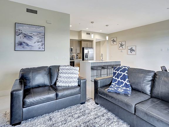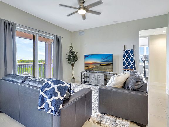 Welcome to this newly constructed condo, a contemporary haven nestled in the prestigious Majestic Palms community of Fort Myers, completed in 2023. Positioned on the fourth floor, this inviting unit boasts 3 bedrooms, 2 full bathrooms, and a stylish aesthetic with modern finishes that elevate the living experience. As you step into the building, the first floor beckons with convenient amenities including a well-equipped exercise room, a common lounge, and serene outdoor seating by a refreshing freshwater pond. Majestic Palms takes luxury living to the next level with community perks such as a heated pool and spa for year-round enjoyment and a BBQ area designed exclusively for residents. Discover an expansive retreat in this condominium, boasting just under 1500 square feet of living space adorned with lofty 10-foot ceilings throughout. Situated on the fourth floor, access is granted effortlessly via a common elevator or a set of stairs. The heart of this residence unfolds through its thoughtfully designed living spaces, featuring a contemporary kitchen, a dining area, and an inviting great room. The convenience of a full-sized washer and dryer awaits in the adjacent laundry room. All three bedrooms are strategically placed on one side of the unit, creating a harmonious living arrangement. The primary bedroom stands out with its own luxurious en suite bathroom, while bedrooms 2 and 3 share an equally stylish bathroom. The gourmet kitchen is a culinary haven, adorned with quartz countertops, stainless steel appliances, and European-style cabinetry. A substantial kitchen island takes center stage, complete with a breakfast bar featuring three chic stools for casual dining. Indulge in the lap of luxury as bedroom 1 hosts a regal king-sized bed, while bedroom 2 mirrors this opulence with its own king-sized comfort. For added versatility, bedroom 3 features bunk beds, adding a playful touch to the accommodation. Beyond the confines of this exquisite condo, Majestic Palms beckons with a host of community amenities. Dive into the lap of luxury with a heated pool and spa, ensuring year-round enjoyment for residents. Elevate your outdoor experience at the exclusive BBQ area, creating a communal space where relaxation and recreation seamlessly intertwine. This condo epitomizes the perfect blend of comfort and convenience, offering a prime location in the heart of Fort Myers. Bunche Beach, located right on the sandy shore of San Carlos Bay, is just a little over 3 miles from Majestic Palms. Additionally, the location is equidistant between the Cape Coral Bridge and the Sanibel Causeway for fun day trips. It is best to have a vehicle with you as Fort Myers, FL is a large metro area. The Fort Myers International Airport is a quick 25-minute drive from the home. Pets are not allowed. This is a self check-in property. You will receive the codes to check in once we have received the full payment and HOA approval has been received.