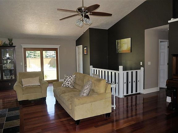 Pride of ownership shows throughout this home. Manicured landscape with fire pit, large two story shed, fenced yard, garden and beautiful landscape design. As your enter the front double doors your greeted with extensive Brazilian Cherry hardwood floors throughout the main level. Notice baseboards are 7 inch upgrade throughout, vaulted celings, fireplace, open to eat in kitchen. Three bedrooms, 2 full baths, finished lower level, with egress window, with lots of natural daylight. Room with closet in lower level has egress window just outside door. Lower level had family room, game room and spare room. See improvement list. New roof, garage doors, well take and pump, septic, 50 amp service in garage, sprinkler system, all electric receptacles and covers. BACKS UP to 23 at Granger Oak Trails in Granger.