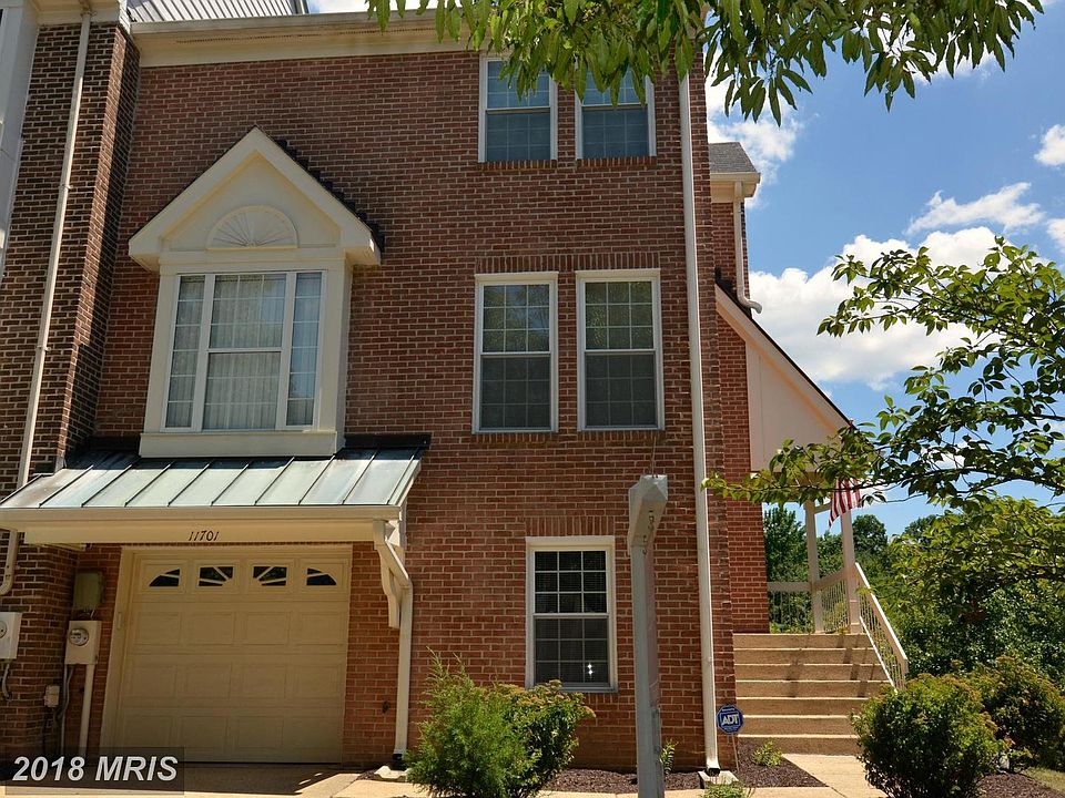 Lovely Montpelier Hills all brick end unit garage townhome w/two story side entry, hardwood flooring on main level, eat-in kitchen w/oak cabinetry & updated black/SS appliances, 4th BR/office on main level, master suite w/vaulted ceiling, WIC & luxury bath w/skylight & jetted tub. Lower level walkout w/den & rec room w/stone fireplace, new expanded deck '08 sides and backs to open space too!