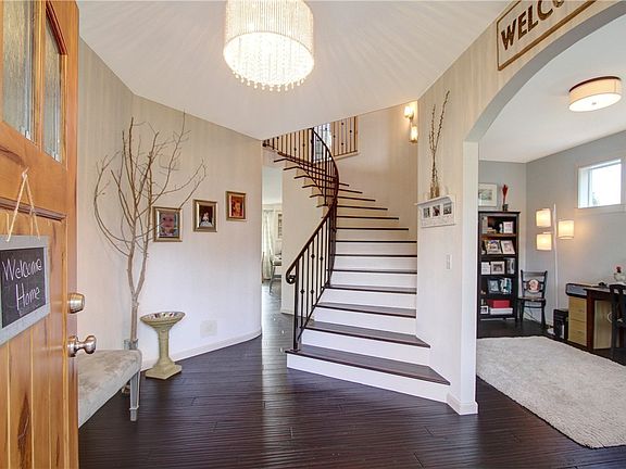 Rare find!Silver Lake 2 story home on a half acre lot w/2 car garage & 2 car shop w/dual driveway access.Amazing finishes throughout!Rich dark bamboo floors,caesar stone counters w/tile backsplash,SS appliances,walk in pantry,natural gas,wrought iron railed spiral staircase.Open,light & bright floorplan!Bonus room,oversized laundry room w/folding counter.Quality finishes that capture personality+white millwork & 6 panel doors.Buyer to verify additional 2 lot subdivision & its parameters.