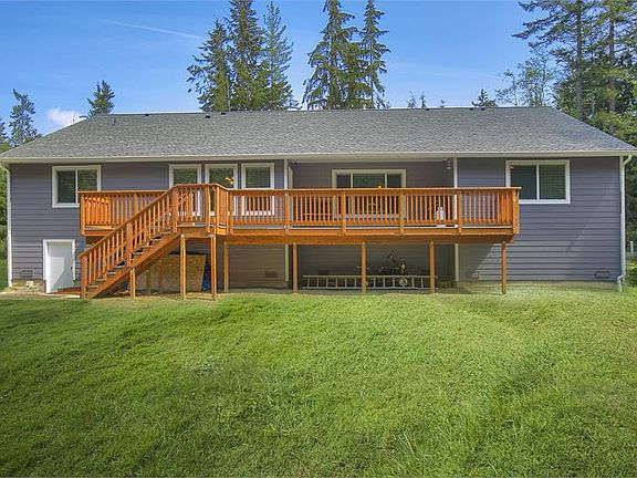 Privacy and quiet you dream of, 1/4 mile off the road,away from it all. Acreage is dry and all useable. New, modern open floor plan, with vaulted ceilings and wide entry ways.Master suite is fabulous,with his and her walk in closets and amazing 5 piece bath.1200+ square Sq ft under the house with endless possibilities.RV parking with full hook ups,Gravity septic/no annual fees, Outbuilding has plumbing and 220V, Media room,custom wood blinds and composite decking. Plenty of room for Horses