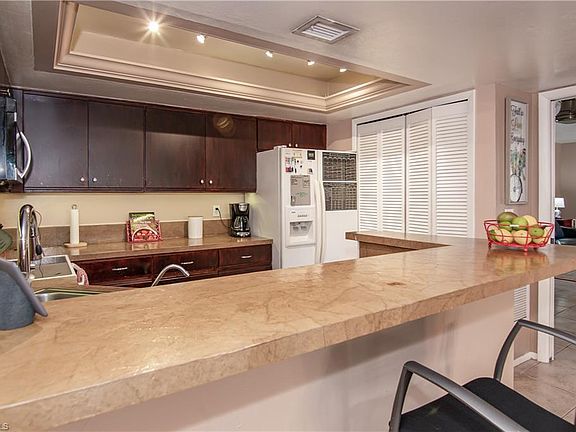 This spacious 3 bedroom, 2.5 bath townhome has a garden, courtyard, garden, and seating area. The kitchen has a refrigerator with an ice maker and water in door, dishwasher, breakfast bar, and pantry. The owner's suite is spacious and has a stand-up shower. The kitchen overlooks a large patio with plenty of storage. This townhome is ready to move in! Enjoy all this Iona/McGregor riverside community has to offer. This community includes its own private community beach, tennis courts, and walking trails. Brand new AC replaced Jan. 2020, Fence replaced 2019, yard with irrigation system, 5 year termite warranty (annual renewal fee). Walking path around lake, perfect for catch and release fishing. Check out the drone footage to see where the Caloosahatchee River meets the Gulf! If you're big into water sports, this has everything you need. Boat storage and slips are leased separately. Each day you can watch the sunrise over the Community heated pool, and sunset over the Gulf of Mexico. ATTENTION INVESTORS: Similar units rent for $1400/month!