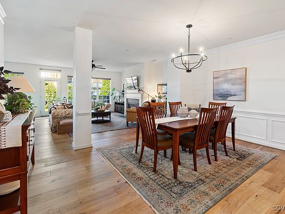 Maintenance free living at its finest! This exceptionally well cared for all brick, 2 level townhouse offers quality and pride of ownership throughout. The light filled foyer leads to an open concept first floor that includes wide plank engineered hardwood floors (replaced in 2021) on all of first level. A gourmet kitchen with huge breakfast bar, updated pendant lighting, double sink with gooseneck faucet, granite countertops, double wall oven, gas countertop range, built in microwave, dishwasher, large pantry and eat in area with updated chandelier, double window with accordion blinds. The living room has a gas fireplace with a large mantle, triple windows with accordion blinds and door to backyard. The dining area has updated chandelier, chair rail, picture frame molding, crown molding. The primary suite on the second level is a private retreat with an enormous walk in closet, private bath has dual vanities, soaking tub and shower with dual shower heads. The second bedroom functions as a 2nd primary with walk in closet and en-suite full bath. The third bedroom is a great size as well with a cute fandelier. Other updates include: tankless hot water system installed in 2020 and interior fully painted in 2021. You will enjoy the close proximity to the best of the Short Pump area shops, restaurants and parks, dog park and all with easy access to major roads and highways