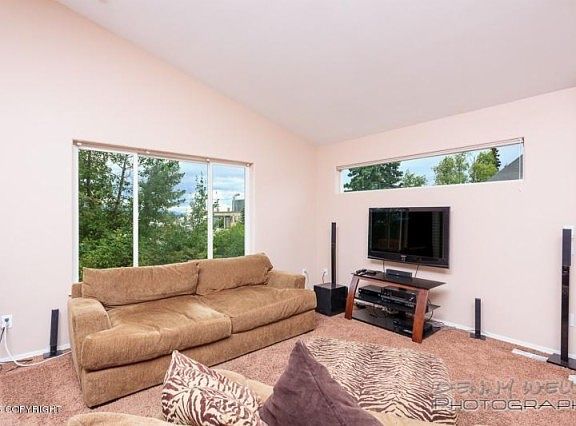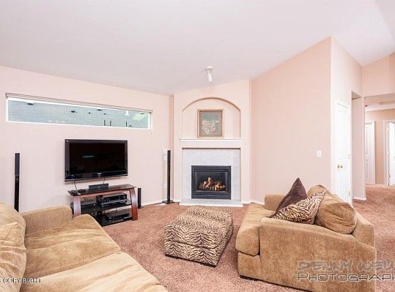 Best location for South Anchorage condo and in the neighborhood, this is like being at the end of the road, with common area across from the front and basically nothing out the back (and partial mountain view to boot)! Birch Knoll abuts the trail system. This condo could easily be 3BR, a private yard, vaulted ceilings, large kitchen w/tons of cabinet storage, cozy fireplace and is newly painted