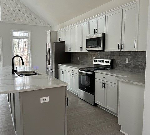 Modern Farmhouse meets Mountain Chalet. Totally renovated. All the wow factors are included in this home. 16' ceilings, LVP floors, quartz countertops, with tile backsplash. All new stainless appliances. Huge walk in shower w/ double shower heads. Large private deck and private deck off primary bedroom. Situated on 5.06 wooded private acres.