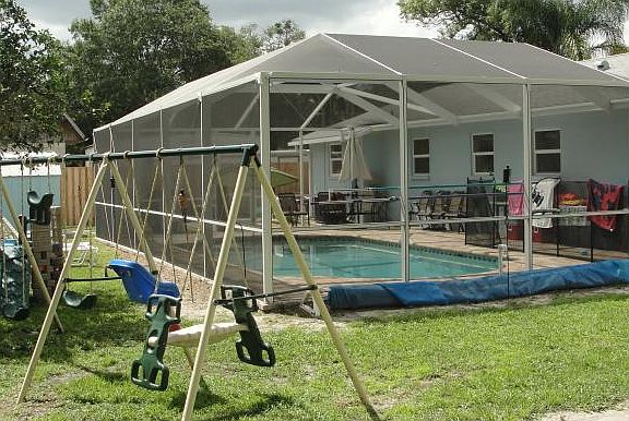 Our beautiful paradise home is similar to a cozy beach cottage! It has a huge fenced in yard, 6 foot privacy fence on back and sides with chain link on the front with two gates, that pets and kids love. It's located in a slow pace neighborhood on a dead end newly paved street. Unlike a subdvision, it's not deed restricted. It has a bone fire pit, a shuffle board, and a beautiful screeed in pool that has aqua therapy jets, 3 fountains, heater, sun shelf for small kids, and an umbrella holder. The carport is screened in too. New windows were intalled 6 months ago. There are two motion sensor flud lights on the house. It's walking distance (1 mile) from the HART 24X bus stop (free bus passes for MacDill DoD mil/civ) and a shopping plaza which contains a Publix grocery store and more! Rent includes pool/lawn service. (note: inside wall color has changed since pictures were taken).
