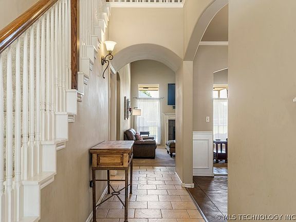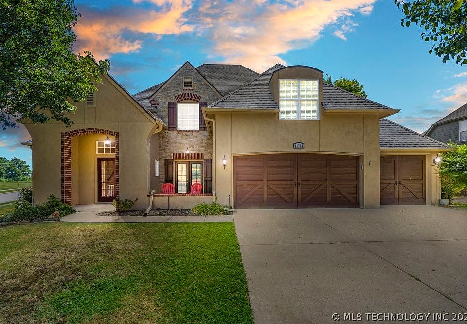 Seller offering 10k Credit towards closing costs or any upgrades! 4 bed 3.5 bath 3 car with Gameroom that could be 5th bed on Huge Corner lot in Jenks! Large master suite down plus another bedroom on first floor with additional private full bathroom. Great for mother in law suite! 2 bedrooms upstairs with game room and large Loft area. Formal dining off open living area with lots of natural light and fireplace. Granite countertops in kitchen with stainless appliances and plenty of bar space as well as room for an eat location! Huge .33 acre corner lot with patio in back yard and custom outdoor fireplace. Great for entertaining or relaxing. Located just half a block down from neighborhood Pool, pond and park.