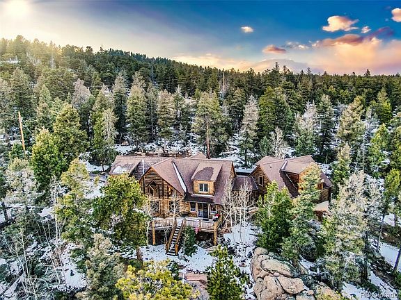 Welcome to this enchanting property offering almost 10 acres of pure serenity, where privacy reigns supreme and the beauty of nature is your closest neighbor. You’ll love drinking your morning coffee with stunning mountain views, including Pikes Peak. As you step onto the back composite deck, the fresh mountain air fills your lungs, and the panoramic views of the rugged landscape take your breath away. Vaulted ceilings and an abundance of windows fill the home with light, creating a warm, inviting atmosphere that feels like a sanctuary from the hustle and bustle of everyday life. There is plenty of room to entertain friends and family, including the separate guest suite providing a cozy retreat for visitors, ensuring they feel as welcome as you do. The main level is thoughtfully designed with a primary bedroom and laundry room, offering the convenience of one-level living. Enjoy the sunroom, as a spot to read a book or tend to your beloved plants surrounded by the tranquility of your own private paradise. Storage is never an issue here, with ample space throughout the home to keep everything you cherish. The large 3-car garage is more than just a place for vehicles; it's a haven for hobbies and projects. Knowing that you're less than a mile from the fire station brings peace of mind, while the proximity to local amenities and easy access to HWY 285 make daily errands effortless. And adventures await, with Denver International Airport and world-class skiing both just over an hour away. 11704 Blackfoot Road isn't just a home; it's a dream come true, and a place where every day feels like a getaway. Come and experience the magic for yourself – your mountain retreat awaits.