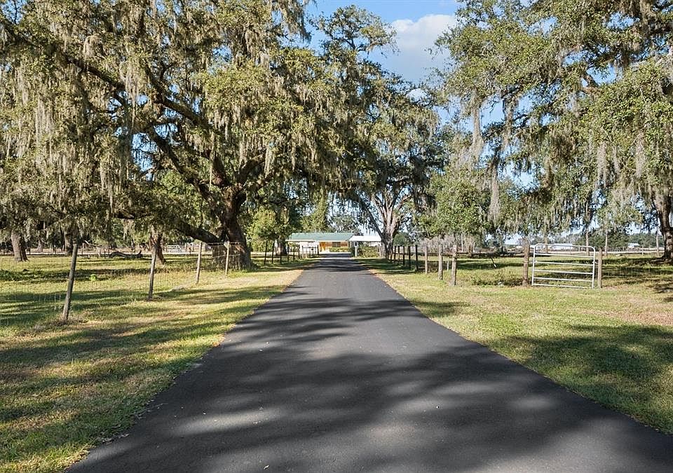 Welcome to your own private oasis—where peaceful country living meets modern comfort and convenience. Nestled on over 5 acres of beautifully maintained land, this exceptional 3-bedroom, 2-bath pool home offers the space, privacy, and versatility you’ve been searching for. As you enter the property, a long paved driveway lined with majestic oak trees creates a breathtaking first impression and guides you to the heart of this charming estate. The canopy of mature oaks provides natural shade, scenery, and a sense of tranquility that sets this property apart. The well-appointed home features a spacious split-bedroom floor plan designed for both comfort and functionality. The inviting living area with wood burning fireplace flows effortlessly into the dining space and kitchen, making it ideal for hosting family gatherings or relaxing evenings at home. Generous windows allow natural light to pour in, highlighting the serene views of the surrounding acreage. Step outside to your very own paradise—an oversized screened-in pool and patio area, perfect for cooling off on warm Florida days, entertaining guests, or simply unwinding in complete privacy. With abundant outdoor space, you have endless opportunities for gardening, recreation, or expanding your outdoor living vision. For those needing extra storage or workspace, the property includes a detached barn, offering excellent utility for equipment, tools, livestock, or hobbies. Additionally, the dedicated RV carport provides safe, covered parking for your recreational vehicle, boat, or extra vehicles—ideal for travelers, adventurers, or anyone who values convenience and protection for their investments. This exceptional property offers the best of both worlds: a peaceful rural setting with all the amenities needed for comfort, recreation, and everyday living. Whether you’re seeking a private homestead, a hobby farm, or a place with room to grow, this home delivers unmatched potential. Don’t miss this rare opportunity to own a spacious pool home on expansive acreage with endless possibilities. Come experience the beauty, privacy, and freedom this unique property has to offer!
