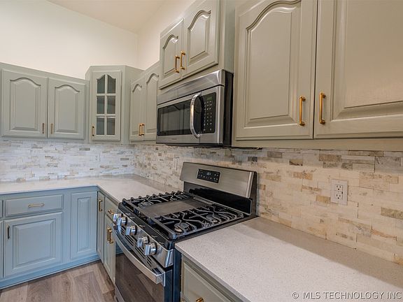 Lovely home in Owasso Schools! The office on the lower level could serve as a fantastic 4th bedroom with access to a bathroom, and there’s also a large upstairs room that offers even more versatility—it could be a fourth bedroom, a home gym, or a movie room! This home is full of modern updates, from the German schmear fireplace in the great room to the new luxury wood-look flooring and newer carpeting upstairs. The bright and airy interior features neutral trending paint, a wall of windows, and quartz countertops throughout, including the laundry room.