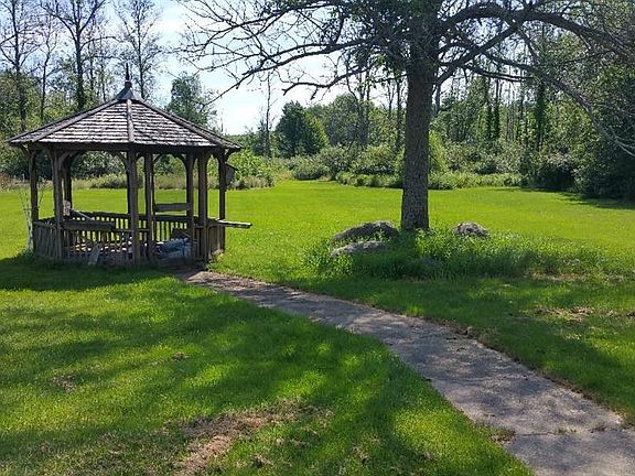 Vinyl sided L-shape ranch w/ 1772 square feet on 4.8 acres. Handicapped accessible front & rear ramps. Plenty of kit cabinets, pantry, center island. Formal dining rm & 12x6 office. 3 nice size bdrms w/dbl closets. full bath w/handicapped shower. 2nd full bath 11x10 w/whirlpool tub (as is). 1st floor laundry. Huge basement, water filtration system, generator, central air, rear deck w/hot tub, gazebo & shed. Double wide black top driveway.Deep lot 602.