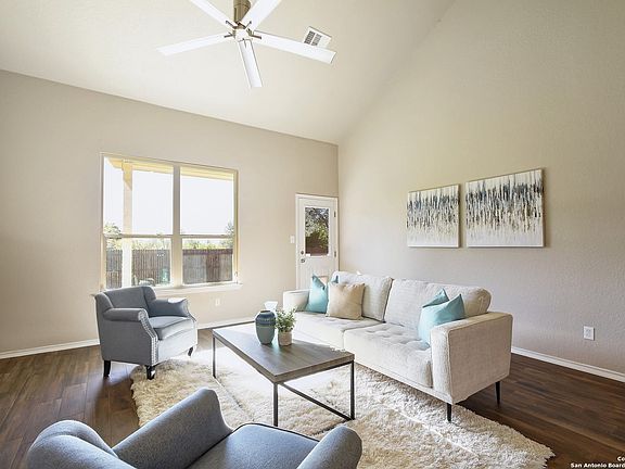 This Pristine 2-Story Home In Willow Grove Could Be Yours! With a light and bright floor plan, this 4 bedroom 2.5 bath beauty features high ceilings, laminate and tile flooring, open kitchen/dining with SS appliances and gas cooking, first floor primary suite with full bath and backyard views, second floor family/game room and well-sized secondary bedrooms. The backyard is ready for entertaining or relaxing with a covered patio, lawn and privacy fence. Close to schools, with easy access to Loop 1604 and shopping, and just 3 miles away from Randolph Air Force Base. Book your showing today!