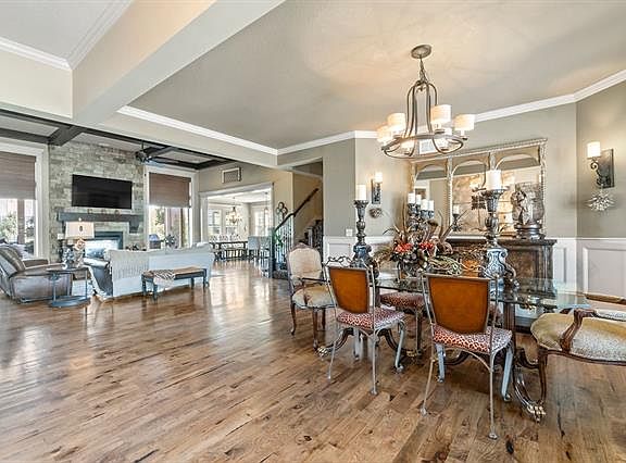 Stunning- 1.5 story Todd Hill custom build in Mills Farm on a corner/cul-de-sac lot!! Immaculate & well cared for home with Lots of Upgrades!! Kitchen includes: wolf appliances, double oven, counter-depth microwave drawer, zero-depth commercial size refrigerator, costco door in the pantry! Beautiful coffered ceiling in hearth room w/see-through fireplace to outdoor living area. LL patio with stamped concrete, firepit and rock privacy wall. Covered deck w/extended roofline & trex decking. Upgraded hardwoods throughout. Finished daylight walk out basement includes: 5th bedroom w/private bath, guest bath, wine nook, wet bar w/dishwasher, exercise room, storage area, theater/entertainment room w/projector. 4- car garage w/epoxy flooring.