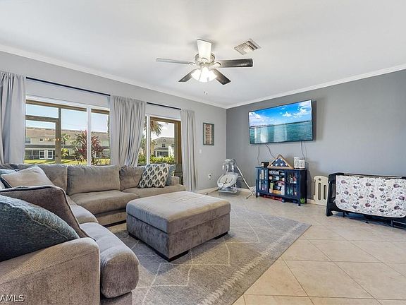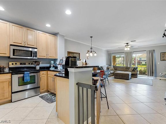 Beautiful, move in ready Townhouse located in Olympia Pointe! This home features lake view, open living concept downstairs with tile throughout. Crown Molding downstairs, granite counter tops in kitchen and half bath. Stainless Steel Appliances and newer fixtures throughout. Large storage space under stairs. Upstairs you have two bedrooms, 2 full bathrooms and a loft. Laundry is located in garage and gives plenty of space for your car. This home is located in the back nestled on a quiet street and very little traffic. No storm damage from Ian and this home also includes hurricane shutters for windows. Olympia Pointe is a gated community and is minutes from local shopping, dining, local dog park, the interstate and so much more. Schedule your private showing today!