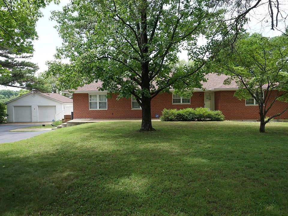 Never before on the market, this one-of-a-kind property makes up 1+/- acre in city limits of Festus & provides privacy you're looking for. This move-in ready home has been loved & meticulously maintained since day one! All brick, 3 spacious bedrooms w/ large closets, 1 full bathroom w/ 2 closets, family room w/walk-in closet, wood burning FP in living room & vinyl double hung windows throughout. Spacious kitchen/dining w/original custom hand-made cabinets. Full walkout basement is finished w/ full bath, office room, rec room, kitchen sink w/cabinet (set up for full kitchen) & wood burning FP. Walk out to patio. Detached 2 car garage & side porch. This property has a bonus accessory building (formerly a dance studio) that can be your man cave/she shed/workshop or simply used for storage. New roof house & garage 2018, new gutters house 2015, new furnace/AC w/ heat pump house 2018, new water heater house 2014. Spacious yard is complete w/ mature pines, roses & arbor w/ wisteria.