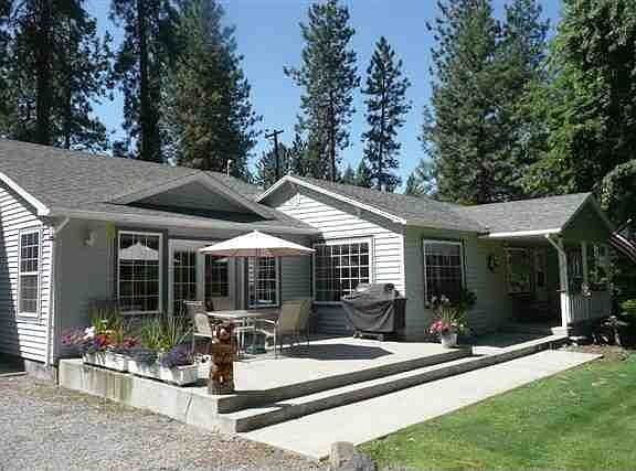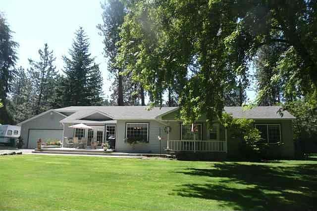 You've found your cottage nestled in the trees across from Spokane Country Club. On nearly an acre this 3 bedroom 2 bath home offers over1600 SF of one level living.Built in 1955 and full remodel w/addition completed in 2001 to include full master suite for mother in law set up, pantry, laundry, office area, additional entrance, deck, new windows, roof, furnace and connected to sewer. Private setting, parklike yard, full sprinkler system. A/C prewire & Mead schools.