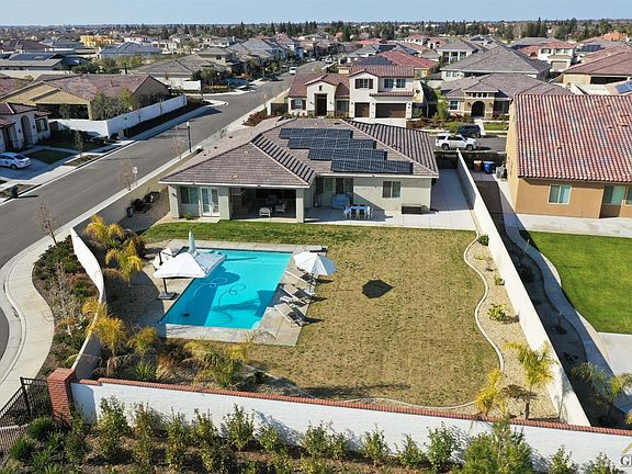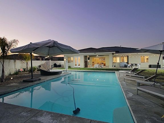 Don't wait on new construction when this home is available NOW. Don't miss out on the opportunity to own this immaculate Belcourt Mahogany home that is brimming with upgrades plus OWNED solar. The interior of the home is bright and light with high ceilings, recessed lighting, plenty of windows and a triple track sliding glass door that leads out to the extended living area w/ a brick fireplace and a beautiful inground swimming pool. The split wing home features a formal dining room, office, plantation shutters, upgraded tile flooring throughout and ceiling fans. The kitchen is open to the living room and includes a large kitchen island, quartz countertops, stainless steel appliances & an upgraded refrigerator. The master suite includes a walk-in closet, quartz countertops, upgraded shower/separate tub. This home is located in a on a large premium corner lot backing up to the promenade and adjacent to a cul de sac. You will have access to the club house, fitness center and billiards.