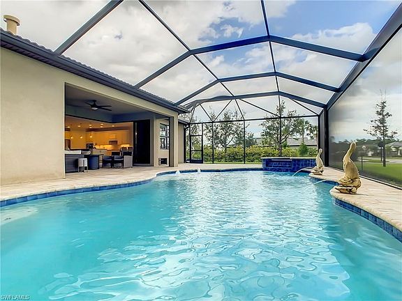The Pinnacle is one of the all-time best-selling designs by Pulte Homes. This open concept home has 3 generous bedrooms located in private areas of the home, 3 Baths + den and large 2 car garage with separate golf cart bay. Full of luxury upgrades throughout;tray ceilings, crown molding,21"porcelain tile, gourmet designed kitchen & large den.You'll love this home's signature design feature, zero edge sliding glass doors in the great room connecting the indoor & outdoor living area. Picture window screening, outdoor living space with a large under truss area that is plumbed for a summer kitchen & a massive lanai to truly enjoy the Florida lifestyle!The custom built pool & spa overlooks an expansive backyard.The spacious open & airy master suite and calming spa style master bathroom has an amazing walk-in closet.The gourmet kitchen features 42"white cabinets, stainless appliances, quartz countertops, marble backsplash & an impressive large island that's perfect for entertaining.Bridgetown is gated and offers country club amenities-resort-style pool,lap pool,tennis,pickle ball,bocce ball &fitness center. The Plantation is conveniently located near shopping,entertainment & RSW airport.