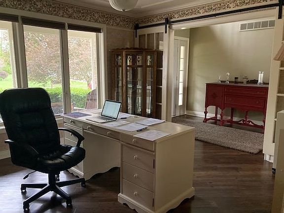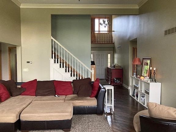 STOP RIGHT HERE!! This home offers over 3300sqft, 4BD, 4BA with a master suite on the Main Level! Excellent curb appeal with beautiful mature landscaping complemented with a large front porch. Upon entering the home, you will be greeted by a two story foyer with an array of natural light. On your right there is an office/ formal dining room with sliding French doors. In the great room there are soaring ceilings with a ceiling to floor brick wall that boasts a gas fireplace and a mount for a television. There is an open eat-in kitchen with plenty of cabinet space, an island with a Butcher block top, and tons of windows which makes looking at the gorgeous backyard easy. The master bedroom is on the main level and has a spacious bathroom with a double sink vanity and walk-in closet. Upstairs you will find three more spacious bedrooms and a full bath. Downstairs is finished with large windows another entertaining area with a bar that is equipped with a sink and a refrigerator. There is also a half bath and 2 storage areas. This home is ready for new owners to start making their memories.