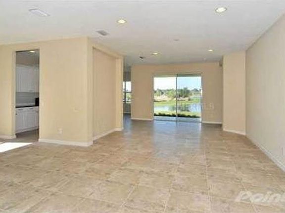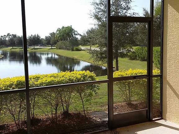 Bargain - Blue Sky model overlooking lake. Granite kitchen with stainless steel appliances. Breakfast room. Open plan living room with dining area. Den/Office. Window blinds. Ceiling fans. Washer and Dryer. Screened Lanai. Maintenance Free. Attached 2 car garage. Gated community with tennis courts, playground, dog park, splash park, ball park, nature trails.