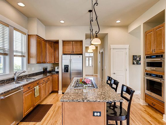 Gorgeous Bradburn Village home, featuring large Carriage House above the 3 car garage! One of the original Cottage Homes by New Providence, this home was quality built from the ground up, and is packed with custom home detailing, including smooth walls and classic window trim and baseboards. The gleaming hardwood floors have been recently refinished throughout the main floor, including the living room w/ gorgeous custom fireplace, and formal dining room. The kitchen has granite countertops, beautiful, rich cabinetry, and stainless appliances, opening to the bright and airy family room that looks out to the patio and fenced yard. The main staircase and upper-level feature custom cork flooring throughout, including the loft & Master Suite, both with mountain views, as well as the two other bedrooms and bathroom. The full basement is completely finished with the exception of some smaller areas left for storage, and boasts a huge recreation room and a large bedroom & bathroom that are perfect for guests or teenagers. In total, the main house consists of 4 bedrooms/4 bathrooms, plus a loft/office, while the Carriage house unit w/ separate entrance, features an actual bedroom, full bathroom, full kitchen, washer & dryer and ample room for guests. It makes an easy, legal rental, like it currently is, or can serve countless other purposes including an office, art studio, Mother-in-Law unit, etc. The tenant is currently on a month to month lease. Bradburn is a one of a kind neighborhood, and this centrally located home gives you easy access to all the best Bradburn has to offer. Mere blocks from restaurants, grocery stores & other various retail, numerous parks fill the neighborhood, instant access to 50+ miles of trails, a community garden, and the neighborhood pool, clubhouse, and tennis court are just down the street. Don't miss this great opportunity for a meticulously maintained home, in a great neighborhood, with an optional rental income situation built in!