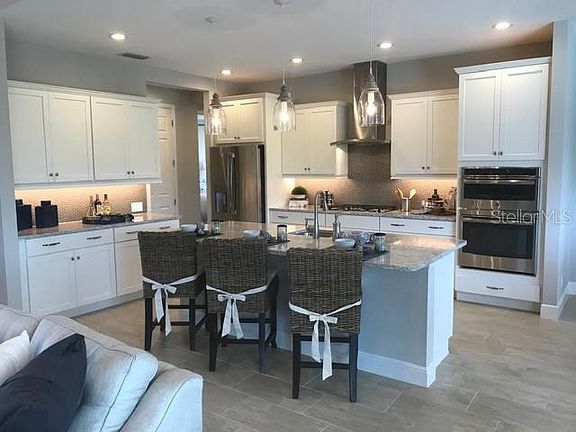 Under Construction. BRAND NEW CONSTRUCTION- BUILT BY SAM RODGERS WITH pure elegance from the moment you pull up to the Brick Paved Driveway you will see the rich details! Gourmet Kitchen, offers Stainless Steel Wall Oven, Gas Cook Top, with Chef's Hood Vent, Microwave and Refrigerator. Kitchen & Bath Cabinets are solid wood cabinets, are dove tailed and are soft close!- Granite Countertops, Title flooring, and 12' CEILINGS ! Oversize lanai with POOL and pre-plumbed for Outdoor gas Kitchen is perfect for all your entertaining needs! The OPEN FLOOR PLAN looks out past the great room to the beautiful lanai, with Bird Sanctuary PRESERVE VIEWS.The Master Suite is grand and elegant leading to the master bath with double vanities and large walk in shower! The 2nd & 3rd Bedrooms share a bath in between with a bathtub and tiled shower wall up to ceiling. This Luxury home offers modern colors that are carried throughout the home and makes it feel light, bright and open. Grey Hawk Landing is a gated community includes two community pools, fitness center, tennis courts , bocce ball courts, playground, basketball courts, soccer field, baseball field and football field. Photo's are of model home and not of the home that is under construction, the model home furniture, accessories, wall-coverings, landscaping, and options are not included in the price of the home. For included features and any questions, please schedule your showing TODAY!
