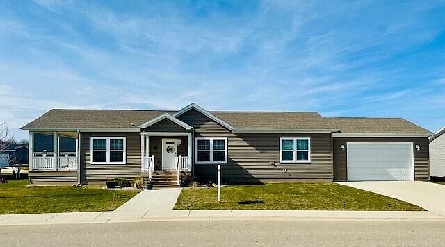 Active and beautiful Porch model community where lush yards and beautiful evenings are enjoyed on your front porch with family friends or neighbors with a cold sweet tea, or nice glass of wine. This quality built 2020 Skyline, Maple model is well sought after floor plan different than most. 26x56 open floor plan w/ fabulous 1456 living square foot,10x26 covered side porch, 24x24 2.5 stall garage, Sliders to porch have blinds enclosed. Chefs' kitchen w/ beautiful white cabinetry & counter space galore. You're going to love the glass tiled back splash. Stainless-steel appliances, w/ wall oven and above microwave. Walk in pantry, primary en-suite bath with vanity, linen closet, nice walk-in shower Lovely dining area with space for beautiful table & chairs for family gatherings.