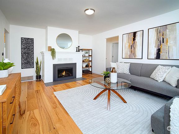 Charming, updated rambler in Broadview! Delightful home features a spacious kitchen w/ bright dining area, gas range, stainless steel appliances, farm sink & ample cabinetry. Kitchen overlooks enormous fenced yard w/ huge entertaining deck. Expansive living room features a gas fireplace w/ brick surround. Engineered hardwood floors through most of home. Primary suite includes walk-in closet+ second large closet; pvt bath w/ heated tile floors, frameless shower & 2 sinks. 2 additional bdrms; updated hall bath w/ quartz counters, tile floor & tub/shower enclosure. Easy alley access w/ 4 parking spots + convenient public transportation options. Bonus-- pull-down ladder to attic w/ potential Sound views, to expand. Pre-inspected & sewer scoped.