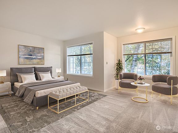 Perfect Two Bedroom Condo in Great Location. Has Two Separate Bathrooms and Two Designated Parking Spots. This ground floor unit provides a large living room w/ a fireplace, modern kitchen w/ corian counters, large bright primary bedroom with private ensuite bathroom and a huge walk-in closet. Updated carpets, paint, and vinyl framed windows. Comes with all appliances. Condo & carpets professionally cleaned, move in ready. Easy access to freeway, park-n-ride, & shopping. Detached garage fits full sized car w/ storage space + wide driveway. HOA dues pay for water/sewer & grounds. Dogs/cats ok. Lovey front porch w/ tranquil view of pond.