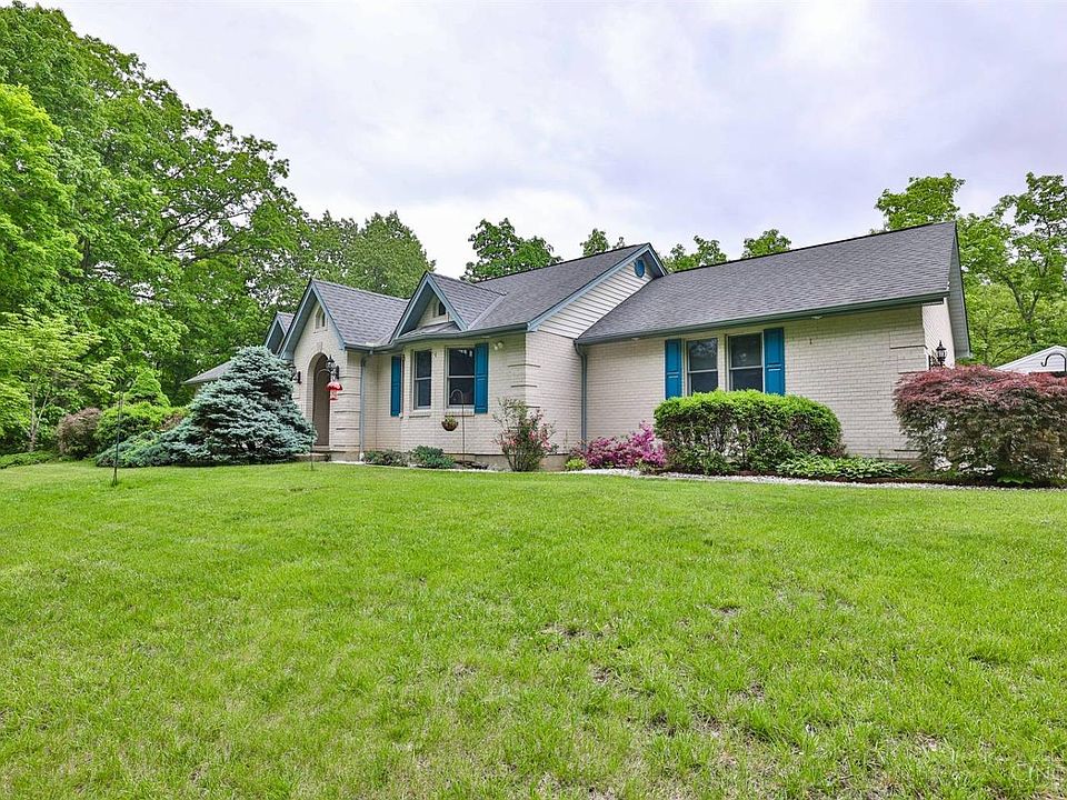 A slice of Gatlinburg in Harrison Ohio! Over 2500 sq ft ranch on 5.024 wooded acres. Abundance of privacy! Finished w/o basement with full kitchen, sauna and 2 add bedrooms. 2 car attached garage and 4 car detached garage including RV bay. Garage has a 2 post lift and 200 amp service with separate meter. Spacious Florida room with propane fireplace and gorgeous view. Property is private drive off Carolina Trace across from Stout.