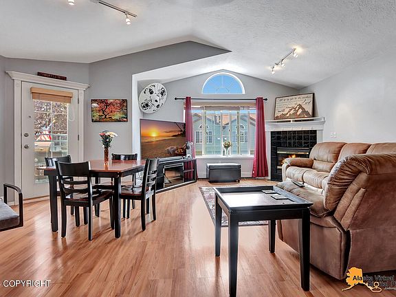Beautiful, 3 BR/2 BA well designed townhome w/ vaulted ceilings in an open concept layout. Bright and Open main living areas. Mountain views through the front windows. Just step out onto the deck for summer BBQ's. 2 car garage w/ plenty of storage space. 3 ample sized bedrooms. EASY fast commute to JBER.