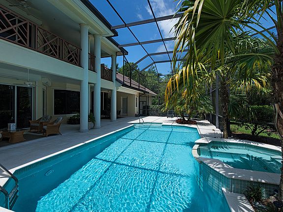 H.8980 - From Golf to Gulf, this private estate on the Cocohatchee River in Collier's Reserve has it all! Take your golf cart to play 18 holes one day, and your boat down the river the next for backwater fishing or beachcombing on the beautiful Gulf of Mexico. The custom residence with 5 BR suites + study boasting 5,154 sq.ft. A/C is situated on a premium lot w/ 194' on a tranquil tree lined cul-de-sac street. Out back an expansive lanai w/ large lap pool, spa, poolside shower & pool bath as well as ample sundeck & covered seating areas is complemented by a fenced-in yard leading to your own dock. ABSOLUTE PRIVACY ABOUNDS ALL AROUND! The traditional design with bright and airy interiors highlights an imposing wood banister staircase w/ the upper landing framing the two-story living room and a spacious family room off the open plan kitchen. A junior master upstairs could be an artist's studio. Special features range from extensive custom wood built-ins and exquisite millwork, to a private elevator and hurricane protection, to a brand new roof. Lots of storage throughout and 3-bay parking. Come for the beautiful private setting, stay for the warmth of this magnificent home!