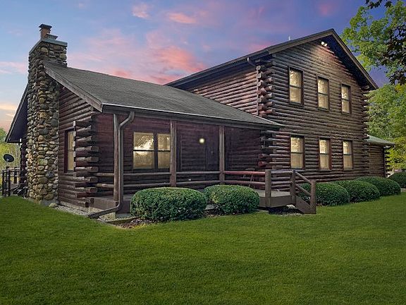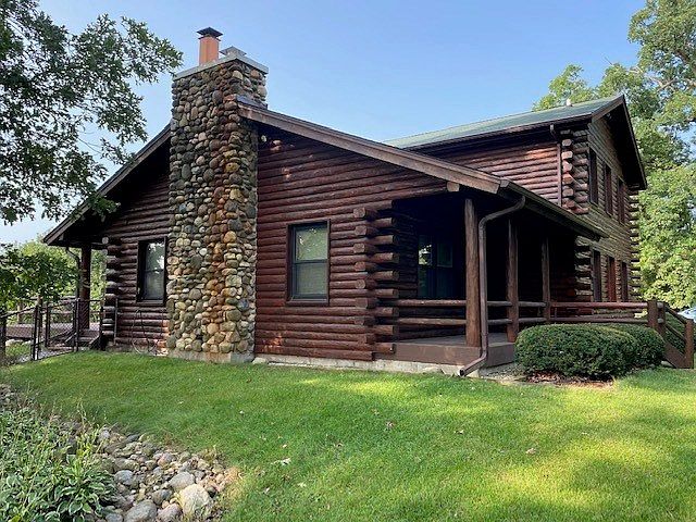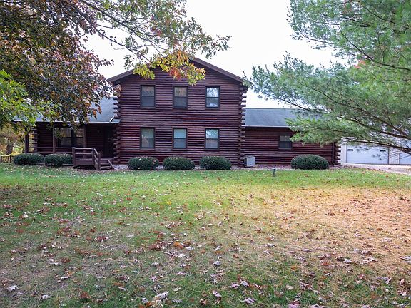 It's all about living with nature. This log home is on 6+ acres. The Nippersink Creek flows through the south end of the property and it backs up to hundreds of acres of land protected by the McHenry County Conservation District. The home has a first floor master bedroom with 3 more bedrooms upstairs. The heart of the home is the great room with vaulted ceiling with log beams and stone fireplace. The country kitchen has Corian counters and built-in appliances. The kitchen and great room open out onto a big deck. The 40' x 60' Cleary barn has a 12' w x 14' h overhead door for a motorhome along with a 16'w x 8'h overhead door. The front 2/3 of the building (40' x 40') has 15' ceiling and is heated with concrete floor. The back 20' x 40' is set up for horses with 2 stalls. It is easy to turn your horses out to the fenced paddock with run-in shelters. There is also a fenced dog run. The home has 1st floor laundry. For peace of mind the home comes with a one year home warranty.