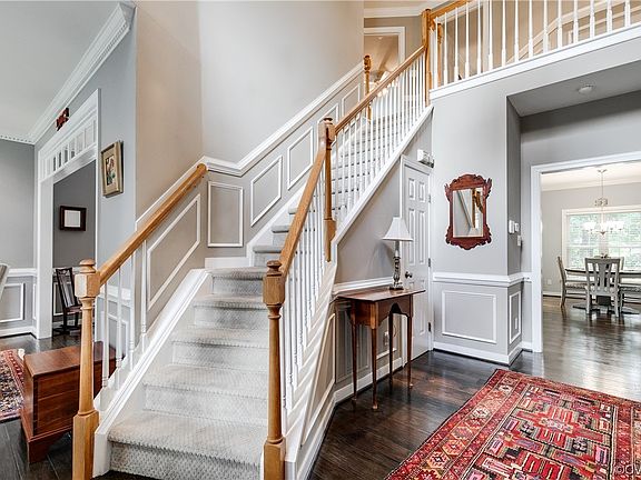 Welcome to the picturesque Wythe Trace neighborhood in Henrico! Boasting 4 bedrooms and 2 and a half baths, this property is perfect for families of all sizes. As you approach the house, you'll be impressed by the beautiful landscaping and large paved driveway that leads to a direct-entry two-car garage. The curb appeal is undeniable, setting the stage for the beauty that awaits inside. Upon entering, you'll be greeted by a spacious two-story entryway with an elegant staircase, creating a grand first impression. To your left, find a formal dining room with a large bay window allowing natural light to flow in. Continue into an open floorplan kitchen and living room featuring an eat-in dining area, gas fireplace, and luxurious kitchen finishes. Tucked away you’ll find a spacious laundry room and half bathroom, perfect for your visiting guests. The 2nd level offers 4 bedrooms including the primary suite, which will be your true oasis after a long day featuring a walk-in glass shower, large soaking tub, and double vanity. Outside features a large rear deck and brick patio, perfect for entertaining guests or enjoying peaceful moments in the privacy of your backyard. Book today!