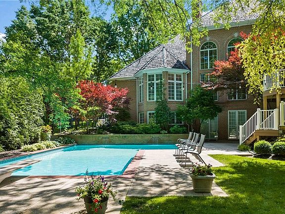 The pool is OPEN...look at the drone video of the pool and the amazing ALL BRICK MARGRITER BUILT 1.5 STORY HOME STUNNING PRIVATE CUL-DE-SAC LOT that is over a half acre. The details throughout the home are unmatched from the beautiful crown molding, solid wood doors, & expansive windows. A 2 story entry welcomes all that enter w/ views of trees through the two story windows in the great room. First floor has gleaming HW & tile floors (carpet in the primary suite) along w/ plantation shutter throughout w/ 3 separate living areas. The 2 story great room w/ a 21' ceiling, FP & the large windows provide an exceptional view of the pool & lush landscape of the backyard. Chefs kitchen has granite counters, W/I pantry, Wolf gas cooktop, SubZero refrigerator & separate freezer, & built-in double oven. Primary suite boasts a beautiful bay window w/ plantation shutters over looking the pool & a private bath w/ a steam shower, whirlpool tub & separate vanities w/ extra storage, and 2 separate W-I closets. A stunning office/library w/ cherry paneling, custom cabinets, & files, plus a second half bath. A curved staircase leads you to the 2nd floor. There are 3 very spacious bedrooms all w/ private updated baths, W-I closets, 9' ceilings, & new carpet. Plus a bonus rec room or second office area & cedar closet. Finished daylight walkout Lower Level boasts a family room w/ surround sound system w/ 11.2 capability & Dolby Atmos capable, custom cabinets, 1,200+ bottle wine cellar with its own cooling system, kitchen, workout room, full bath & loads of storage. Home is on one of the most beautiful parklike streets in Hallbrook. The circle drive provides an abudance of extra parking. The location to shopping, dining, parks, schools, and trails is unmatched. Plus there is easy highway access. This home is a must see and the perfect place to call home.