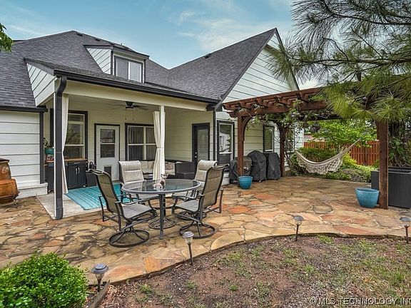 Welcome Home to the highly desired Eddington Place in Jenks This beautiful home has the perfect open floor plan. It features 4 bedrooms, 3 bathrooms, Private Office that could be a 5th bedroom, Formal Dining room, game room upstairs. The Master and 2 guest bedrooms are downstairs. The game room and other bedroom is upstairs. You literally have everything you need on the first level. This home has been remodeled with fresh paint, new carpet, modern lighting & pluming fixtures, Hardwood floors, Granite & Stainless Kitchen to mention a few. The back yard is an entertainers dream with a covered patio w/Pergola and beautiful landscaping, The pool and hot tub is the frosting on the cake to this back yard oases. This overside lot is adjacent to playground & walking trails. This home has been well maintained and its truly a must see! Won't last long for sure!!!