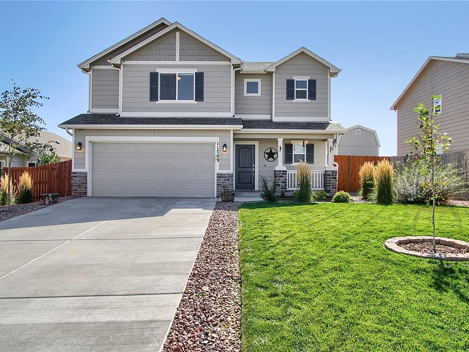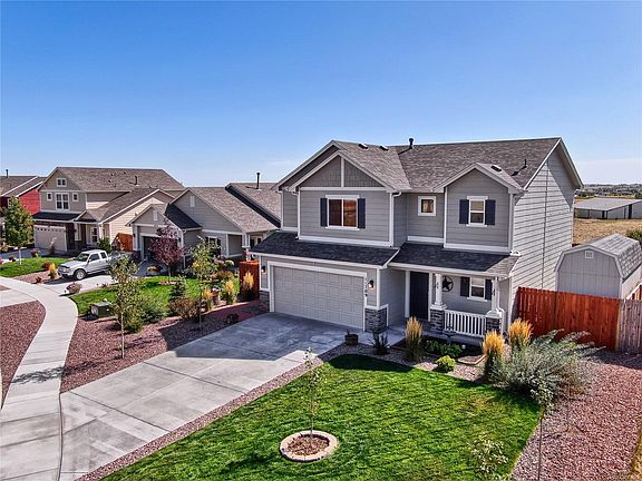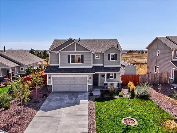 Welcome home to this gorgeous two story home on one of the biggest lots in Bent Grass! Extended pergo laminate plank flooring throughout the main level for easy clean up and great for entertaining! Powder bath by front entry for your guests! Huge kitchen, Breakfast bar, eat in nook and granite counters! Stainless steel appliances! Upgraded staggered cabinets and recessed lighting! Walk out from dining room onto oversized concrete patio, Upstairs you'll find three bedrooms and two bathrooms plus a conveniently located laundry room. Spacious Master Bedroom has gorgeous views and full 5 piece on suite bathroom PLUS a walk in closet! The two secondary bedrooms feature a jack and Jill bathroom. Bedrooms are big and have good sized closets. Backyard features a massive concrete patio with stubbed gas line. 7' by 22' huge shed with loft! Close to shopping, dining, schools & golf. Woodman Hills Metro District providing 2 fitness centers, indoor & outdoor pools, trails, parks, water & sewer.