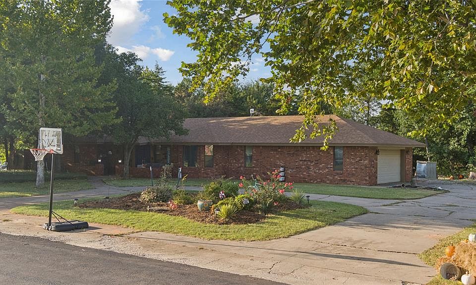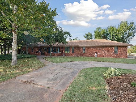 Country Living in Mustang School District, 2352 Sq feet, nestled on a wooded 5.1 acres in the peaceful Little Acres Addition, this charming property offers the perfect blend of rural living and modern convenience. The home features 3 bedrooms, 2 baths, a spacious living room, formal dining area, kitchen that features granite countertops and an abundance of cabinet space, breakfast nook, and a dedicated office—ideal for today’s lifestyle. Carpet installed Sept. 2025 in the Living room and Dining room. In the en-suite bathroom there is a large round tub and a separate shower that has recently been remodeled. The living room has a large, corner wood burning fireplace. Outdoors, the property is truly set up for country living. You’ll find a 20 X 40 shop, a 12 X 36 shed with two stalls and a feed room, a chicken coop, and plenty of space for animals. The home comes with Solar Panels located on open ground to the west of the home. Storm Shelter is located in the 2 car garage for peace of mind. Enjoy the serenity of wide-open spaces while still being conveniently close to town. With quick access to the Kilpatrick Turnpike, I-44, Will Rogers World Airport, FAA, and Hobby Lobby’s corporate office, you can have the best of both worlds—quiet country living just minutes from the city.