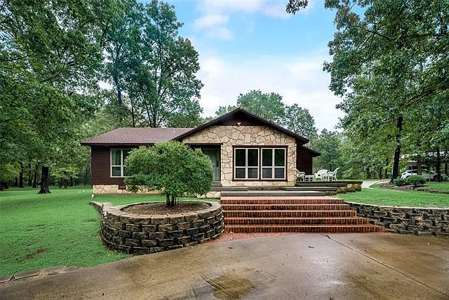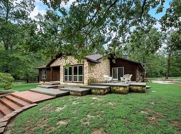 HIDEAWAY IN THE WOODS! SPACIOUS CUSTOM HOME LOCATED DOWN A CONCRETE WINDING DRIVEWAY WITH TWO BRIDGES. PROPERTY HAS HIKING TRAILS OR ATV TRAILS & A CREEK ON NORTH PROPERTY LINE. WILDLIFE GALORE. HOME FEATURES 4 BEDROOMS, 3 AND HALF BATHS, KITCHEN WITH LONG BREAKFAST BAR AND BUTLERS PANTRY. HUGE MASTER SUITE, MASTER BATH HAS JETTED TUB WITH FIREPLACE, WALK IN DOUBLE SHOWER WITH BODY SPRAY JETS. GARAGE HAS CLIMATE CONTROLLED STORAGE. STORAGE BUILDING HAS 2 ROOMS & LOOKS PLUMBED FOR FULL BATH & MAYBE USED AS GUEST QUARTERS WITH A LITTLE WORK. DRAIN AND ELEC PLUG ON DECK IS FOR A WATER FOUNTAIN. LINE OF SIGHT INTERNET TOWER WITH CELL PHONE BOOSTER. ESCAPE THE CITY LIFE & ENJOY PRIVACY IN THE WOODS