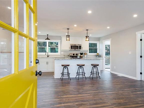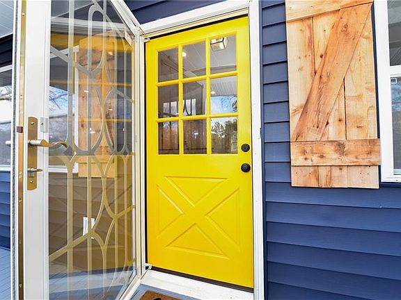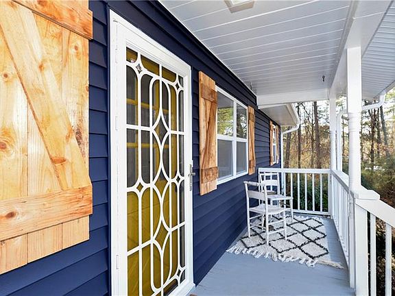 Charming blue bungalow w/ cedar shutters! Adorable rocking chair front porch w/ bright yellow door! Open concept w/ new flooring throughout! Custom light fixtures! High quality kitchen cabinets w/ custom hardware & oversized island! Exotic granite in kitchen & bathrooms! New SS appliances! Floating cedar shelves! Custom trim around new windows & shaker doors. Trendy farmhouse style tile in wet areas! Awesome laundry room w/ custom cabinets! New HVAC, new water heater, new deck, new carpet, fenced yard & matching out building! Waterproofed crawlspace & extra insulation!