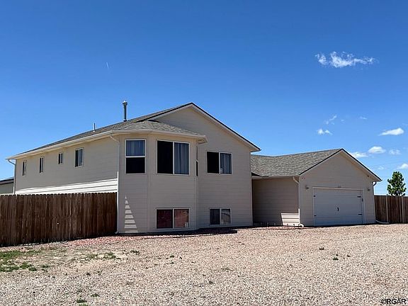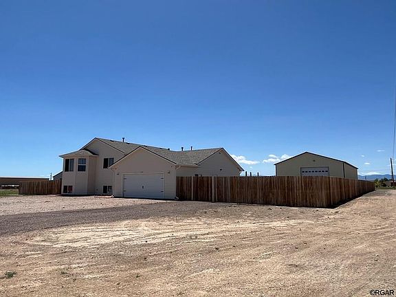 Welcome home to your 4 bedroom, 3 bathroom custom home on 1.09 acres with 2 car attached garage and a 41 x 80 shop! You read that correctly, 3280 sq ft shop. The home has new carpet, a new 6 foot wood privacy fence, and owned solar. The kitchen has newer stainless steel appliances, tons of cabinet space and is open to the dining and living space. On the cooler Colorado days enjoy the living rooms 2-way fireplace that is shared with the outdoor covered deck. On those hotter days, stay cool with refrigerated central air. The spacious primary suite is off the main living room and is complete with double closets and a full bath. On the entry level of the home you have garage access, backyard access, laundry, a bedroom, and guest bathroom. Off the main entry you can access the upper level or the lower basement level where you have a large flex space, large family room, two additional bedrooms, a full bathroom, and a utility/storage room. Outside you are greeted with mountain views and plenty of privacy with the new fenced yard. Enjoy all Colorado weather has to offer on the covered deck or open patio. If the 2480 sq ft inside the house isn't enough space you will find that 3280 sq ft shop at the rear of the property complete with a RV overhead automatic, additional storage room, tons of outlets, and concrete floors. Schedule your showing today and call this your home tomorrow.