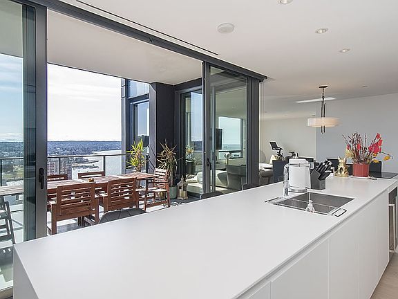 Exquisite world-class panoramic views of ocean, mountains and city views are captivating in this ultra-modern West End Penthouse. The Jervis complex is an amazing collaboration between Intracorp and Inform Design! This astounding residence features floor to ceiling windows and a private ROOF TOP PATIO that is equipped with an outdoor kitchen and fireplace. The sleek kitchen features premium Gaggenau appliance package including a wine fridge, complimented by Italian cabinetry, a Bianco Statuario marble backsplash, and white Corian counters. Private 2 car EV ready garage. Located in the heart of Vancouver's West End filled with the vibrancy of boutique shops, trendy restaurants and cafes plus a short stroll to Sunset beach where you can enjoy amazing walks on the seawall.
