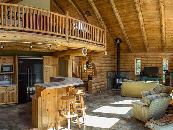 Beautiful, custom, log home on 42+ acres of meadows & forest! Enjoy privacy, relaxing views, gentle terrain, & warm southern exposure. Inside you'll be in awe by the huge timbers used to build this home, especially the cathedral ceiling in the living room with a stellar wall-of-windows. Kitchen has tile counters, higher-end appliances, & adjacent dining area; all open to a grand living room with wood stove. Spacious master suite & bath. Loft area overlooking main level is great for relaxing & extra guests. All appliances included: Viking Sub-Zero fridge, washer & dryer, Jenn-Air range, & dishwasher. Strong well, generator hook-up, garden area, & several outbuildings all with water lines plumbed. Garage with guest/worker quarters including a 1/2 bath, pot-bellied wood stove & wall A/C unit. Sale includes farm tractor, 2000 Chevy S10, misc equipment, some furniture & more! This is a perfect opportunity to step into an beautiful home & property that is also an incredible business opportunity!