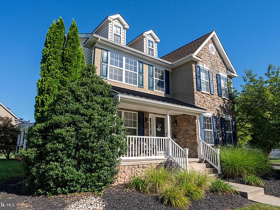 Welcome to this beautifully maintained 4-bedroom, 2.5-bathroom home located in the desirable THP community of Pennsburg. Built in 2008 and lovingly cared for by its original owners, this property blends modern upgrades with community living at its best. A charming front porch, partial stone façade, and mature landscaping create a warm welcome. Inside, a wide center hallway leads to a versatile office or study with vinyl flooring and open shelving on one side, and a formal dining room with an elegant centerpiece light on the other. An updated powder room is also conveniently located off the hallway. The rear of the home features an open concept kitchen and family room with a casual eat-in area, along with access to the two-car garage. From the family room, step outside to an amazing covered deck complete with Trex decking, a ceiling fan, and plenty of privacy—an ideal space to relax, dine, or entertain. Upstairs, you’ll find four spacious bedrooms, two full bathrooms, and a convenient laundry area in the main hallway. The primary suite offers a walk-in closet and an updated bathroom with an oversized tiled shower and glass surround. The finished basement expands the living space with a media area, a beautiful granite-topped bar with seating for four, and an additional flex space perfect for games or a home gym, while multiple unfinished areas provide generous storage. This home is just a short walk from the community’s playground and basketball courts and is part of the Upper Perkiomen School District. Move-in ready and thoughtfully updated, 1171 Morgan Hill Drive is the perfect place to call home.