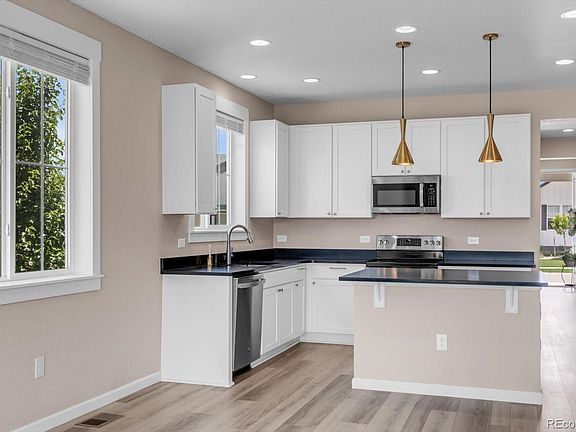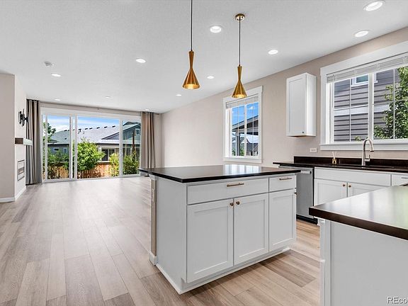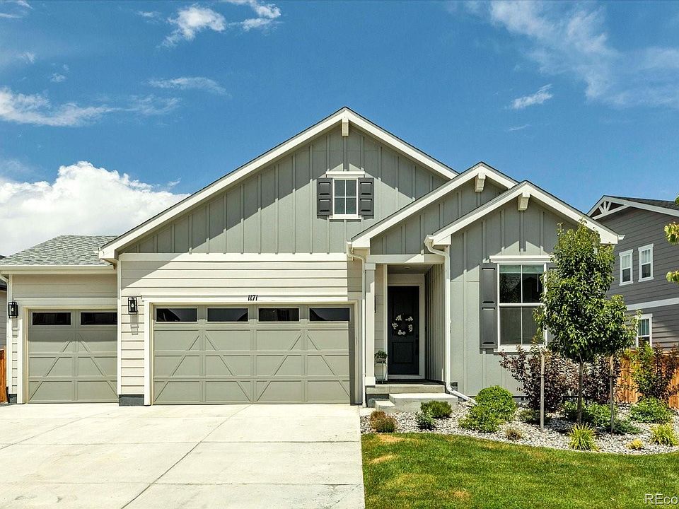 Move-in ready ranch with 3-car garage on a fully landscaped and fenced large lot near the community swimming pool. This home features a main floor master bedroom, a spacious open floor plan with a great room, and a hard-to-find oversized 3-car garage for ALL of your toys and projects. No extra set-up costs for you because it already has an entertainment-ready backyard with a large, stamped concrete patio, professional landscaping including 10 mature privacy trees, and gas hook-up. The office could be converted to an additional 4th bedroom. The primary suite showcases a generous walk-in closet and a spa-like master bath has expanded shower-floor-to-ceiling marble tile and granite counters. High-end finishes include panoramic sliding patio doors, luxury hard flooring throughout, black quartzite counters, shaker cabinets, custom window framing, modern light fixtures, a contemporary fireplace, and a centralized laundry room. The garage is 688sf 29.11'x22.8' with 11' ceiling and EV ready with a 220v charger as well as a convenient access door to the backyard. It was built on one of the larger lots in the community (7,225 sqft) with a more open feel with plenty of light and plentiful parking. This home is located in the Boulder Valley School District in the Parkdale Subdivision featuring over 70 acres of parks and open space, 3 miles of community trails, community pool and dedicated land for a new BVSD school. Live within easy walking distance to parks, open space, and trails, as well as in close proximity to retail and recreational areas. Seller is a licensed real estate agent in the State of Colorado.