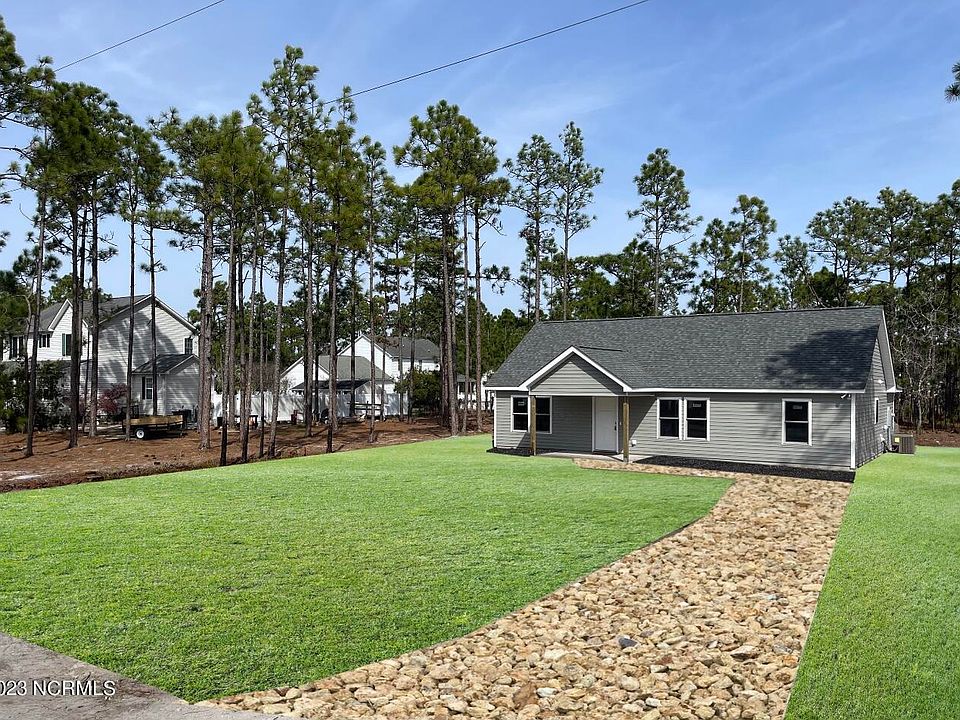 Welcome to your dream home in Boiling Spring Lakes, NC! This stunning 3 bedroom, 2 bathroom new construction offers 1276 sq ft of living space and is ready for you to make it your own. As soon as you step inside, you'll be amazed by the spacious and open floor plan, perfect for entertaining guests and family gatherings. The modern kitchen features beautiful white quartz countertops, ample cabinet space, and a large peninsula for meal prep and seating at its expansive overhang. The large master bedroom offers plenty of natural light and room to relax, while the 2 full bathrooms provide the comfort and convenience. Enjoy the fresh air and natural beauty of the area from your own backyard, or take a stroll to the nearby lakes for a day of fishing and relaxation. With its prime location between Southport and Wilmington and top-notch finishes, this is the perfect place to call home at a price that won't break the bank. Don't wait - schedule your tour today!